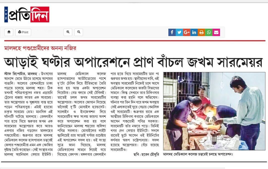 Malda Animal Care Unit (MACU) ,a self-motivated team , an organization ,formed with a determined thought of serving and contributing the environment and nature by being the face of the so called stray animals ,raising the voice for them in every corner of the society ,so that they can also fill the essence off this beautiful safe home , their home, their family in planet Earth with all their homely rights .Various acts have been enacted under the Constitution and Parliament of India regarding safety and protection of the strays and wild animals .